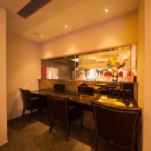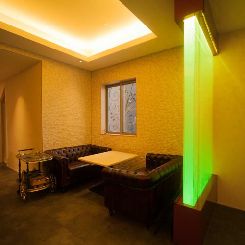 店内のテーブルは全て大理石で。ソファーはイギリスのヴィンテージのアンティークソファーで揃えております。 壁はピアンテという壁材を使用。表面が色んな草木のモチーフが彫刻されております。パールがかかっているので、光があたると様々な輝きを楽しめます。水のインテリア・ウオータースクリーンが設置されています